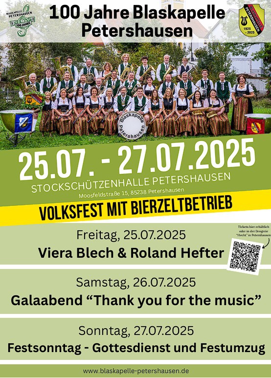 nach einem unvergesslichen Festwochenende im Juli möchten wir euch herzlich zum feierlichen Abschluss unseres Jubeljahres „100 Jahre Blaskapelle Petershausen“ einladen.